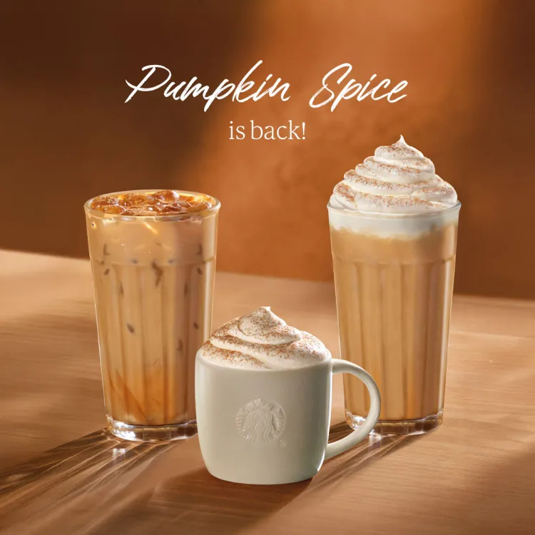 The autumn favourites you wait for all year have finally arrived! Treat yourself to the iconic Pumpkin Spice Latte, cool down with the Iced Pumpkin Spice Latte, or indulge in the Pumpkin Spice Coffee Frappuccino.